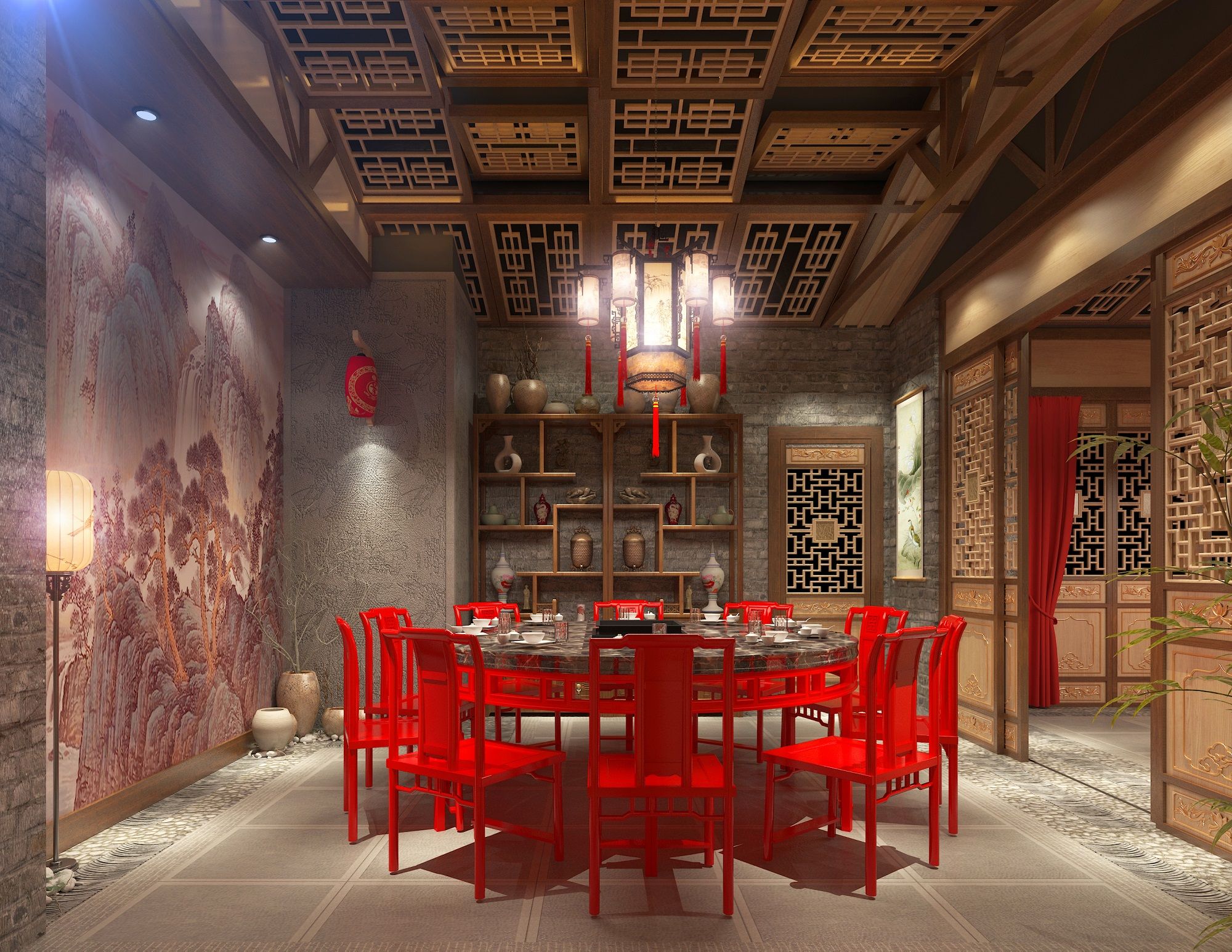 四壁浮影印古意,火鍋店中式裝修之美