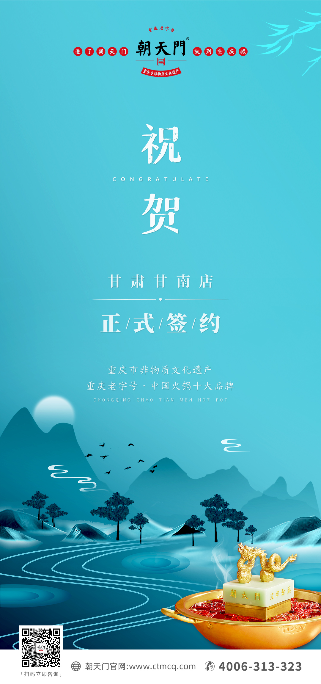 熱烈祝賀:朝天門火鍋甘肅甘南店正式簽約!