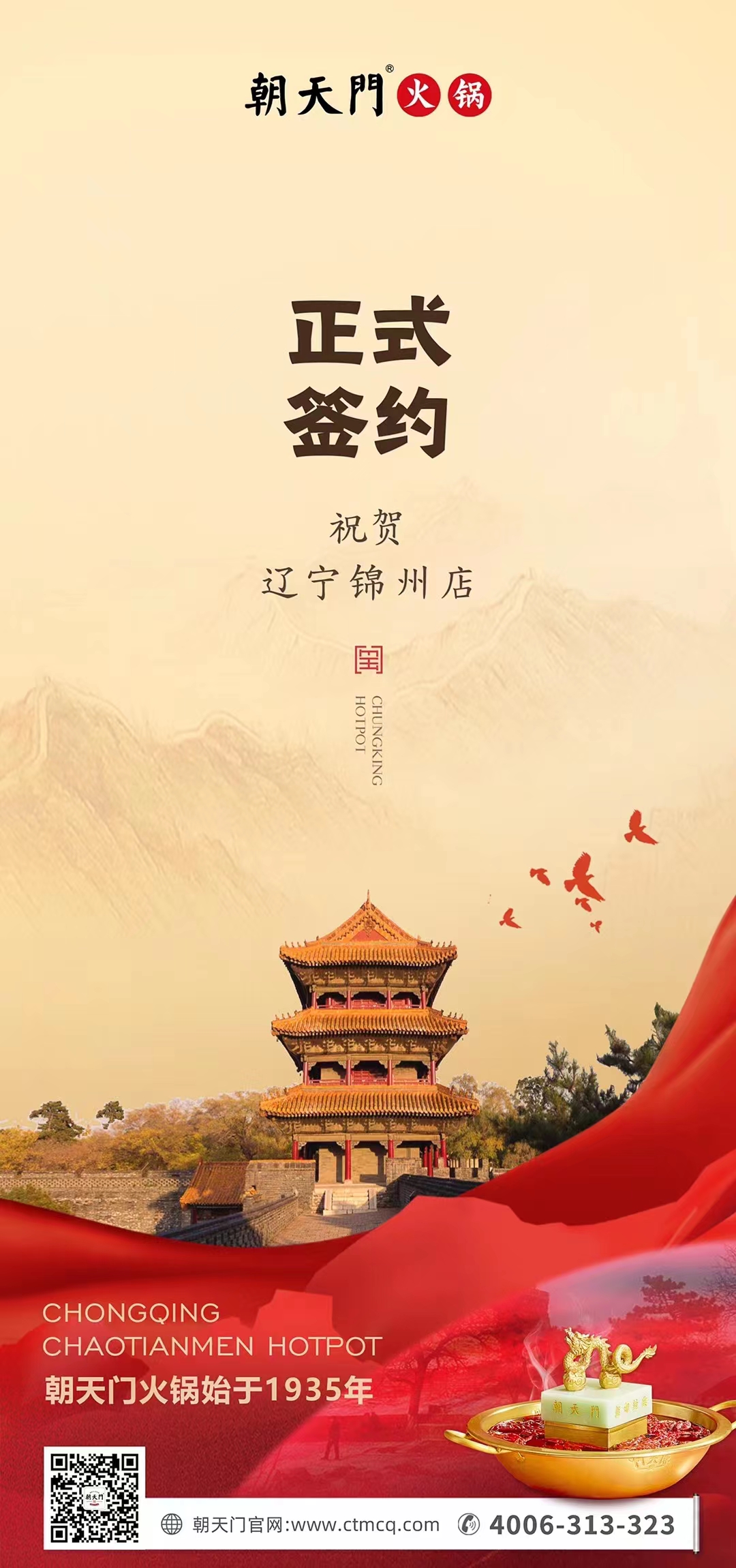 非常感謝遼寧錦州齊女士選擇加入朝天門這個(gè)有力量的大家庭,這是對朝天門火鍋品牌的認(rèn)可與支持,面對如今風(fēng)云涌動(dòng)的餐飲市場,朝天門擁有后端穩(wěn)定的供應(yīng)鏈及完善成熟的營運(yùn)體系,勢必在錦州餐飲市場砸出新的浪花,也提前預(yù)祝齊總生意興隆,財(cái)源廣進(jìn)!
