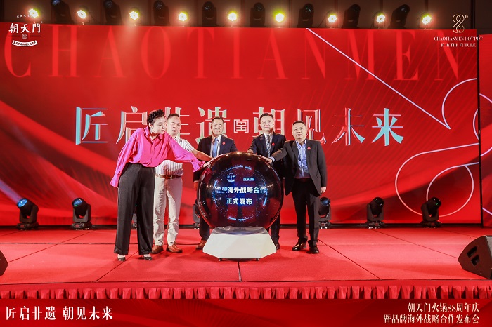 2023年8月8日,朝天門餐飲控股集團旗下品牌朝天門火鍋“匠啟非遺朝見未來”88周年慶暨品牌海外戰(zhàn)略合作發(fā)布會圓滿結(jié)束,朝天門餐飲控股集團董事長王普先生,西班牙蒙福食品公司董事長莊鶴舉先生,朝天門集團高管團隊,西班牙、法國、意大利等海外嘉賓,全國各省市的代理商、區(qū)域加盟伙伴,香港、臺灣嘉賓相約參與本次慶典,共赴這場非遺火鍋的全球之約。