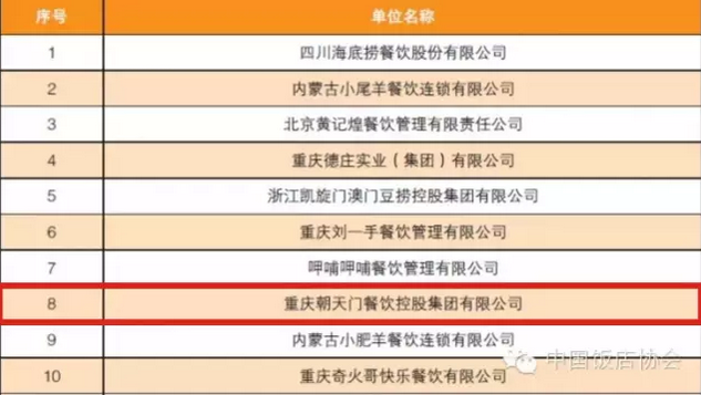 朝天門(mén)榮獲2015年度中國(guó)百?gòu)?qiáng)火鍋餐飲集團(tuán)第八名