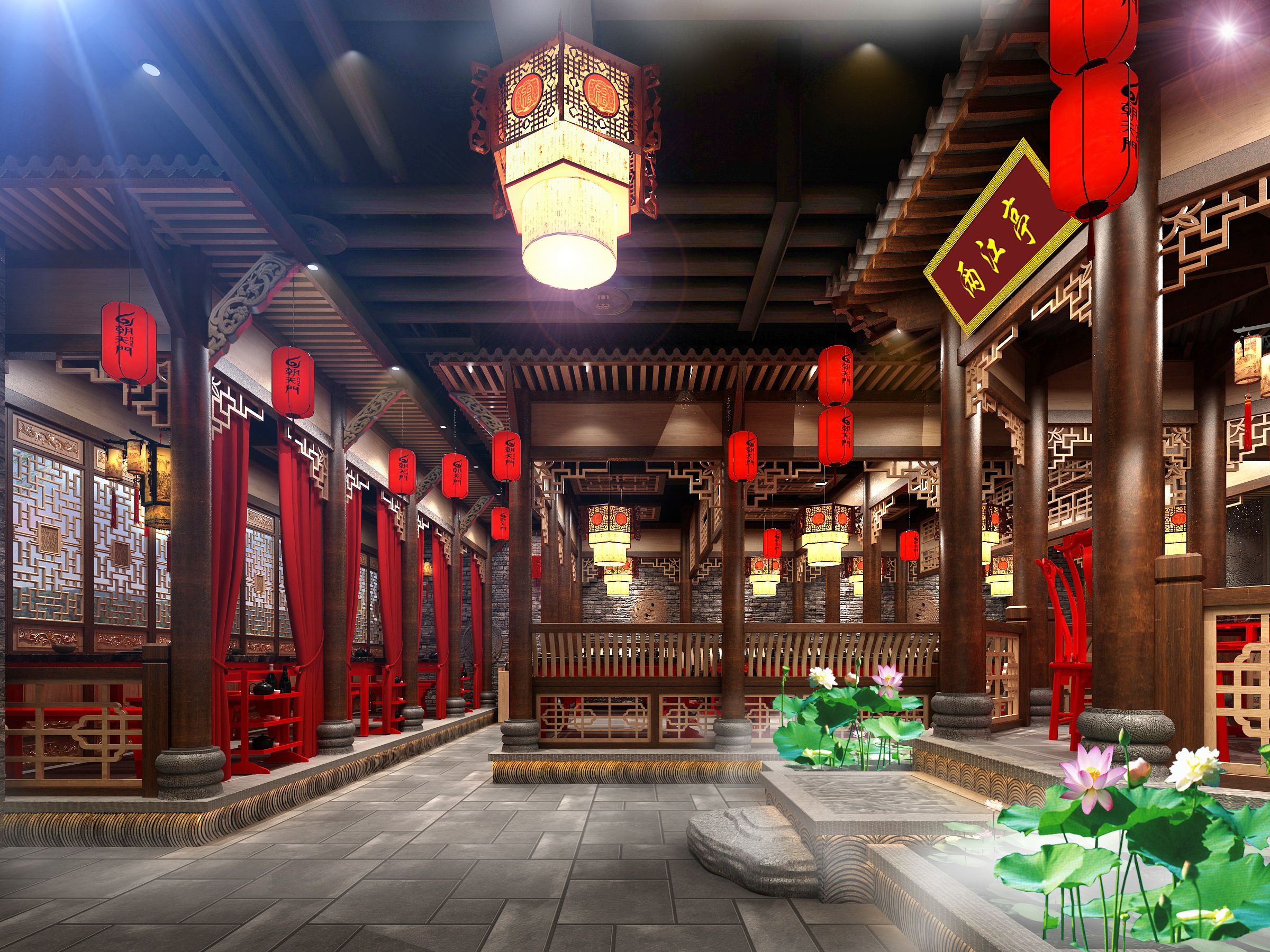 配飾的選擇方面更為簡潔,少了許多奢華的裝飾,更加流暢地表達(dá)出傳統(tǒng)文化中的精髓。飾以精巧的燈具和雅致的掛畫,給火鍋店增添了幾分暖意,使火鍋店在濃濃古韻中滲透出了修身養(yǎng)性的生活境界。