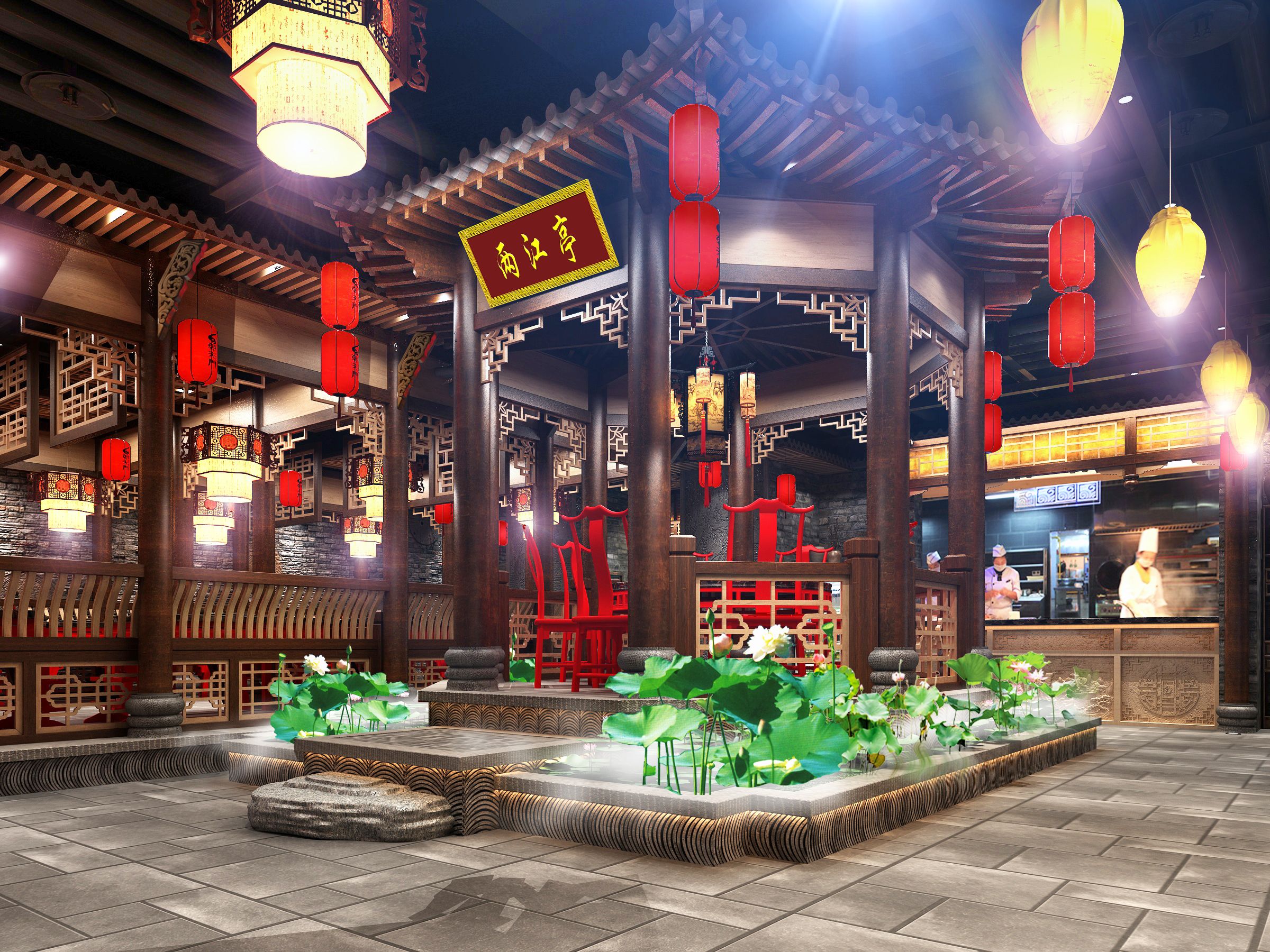 火鍋店應(yīng)該追求空間的靈活性及實用性,充分利用空間放置桌椅但又不能顯得擁擠。在設(shè)計上要根據(jù)空間之間相互的功能關(guān)系而相互滲透,除了用硬質(zhì)墻體劃分空間,還可以通過家具、陳列品、吊頂、地面材料甚至可以根據(jù)燈光的變換來進行劃分。