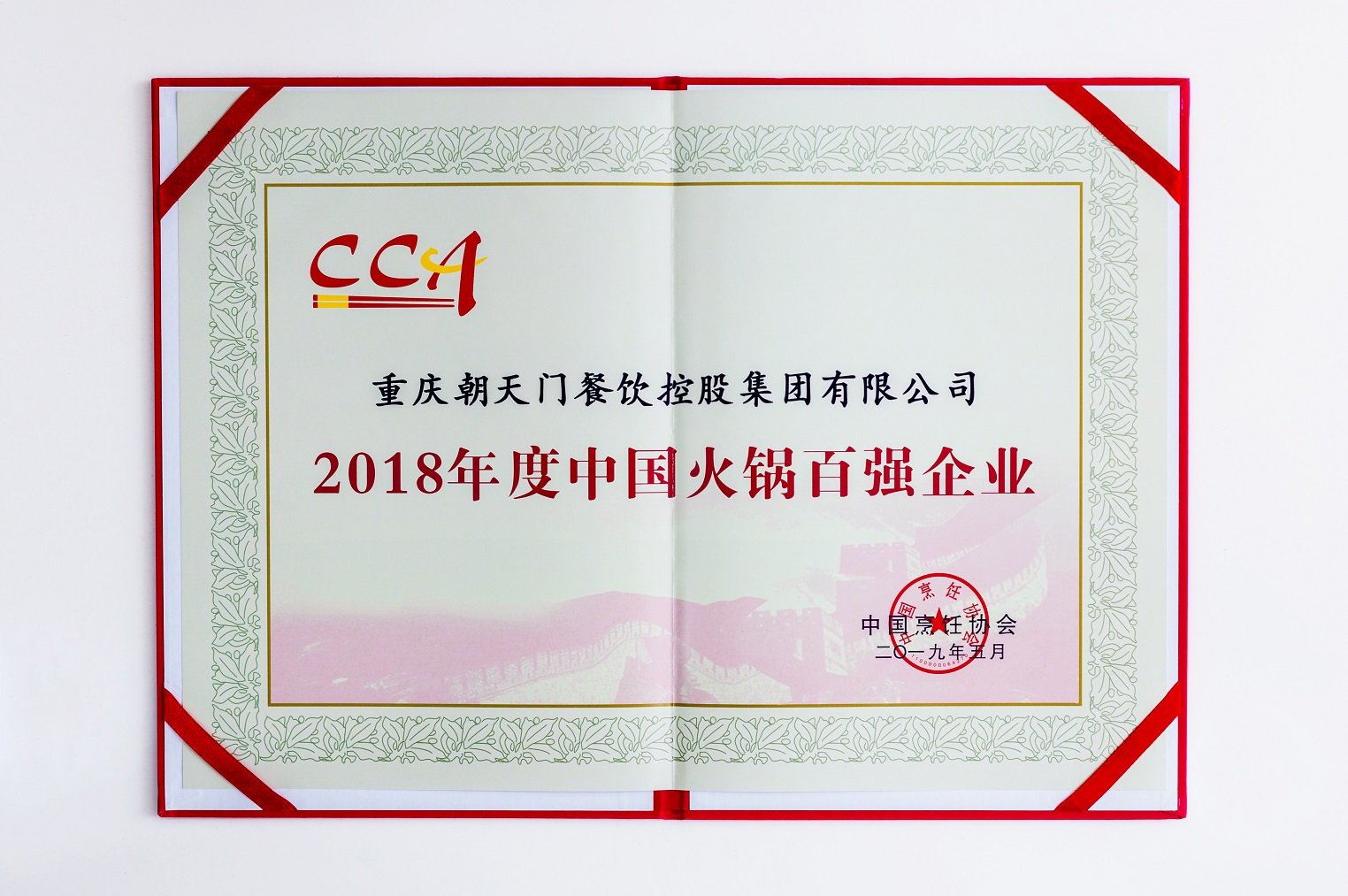 熱烈祝賀:重慶朝天門餐飲控股集團榮獲“2018年度中國火鍋百強企業(yè)”