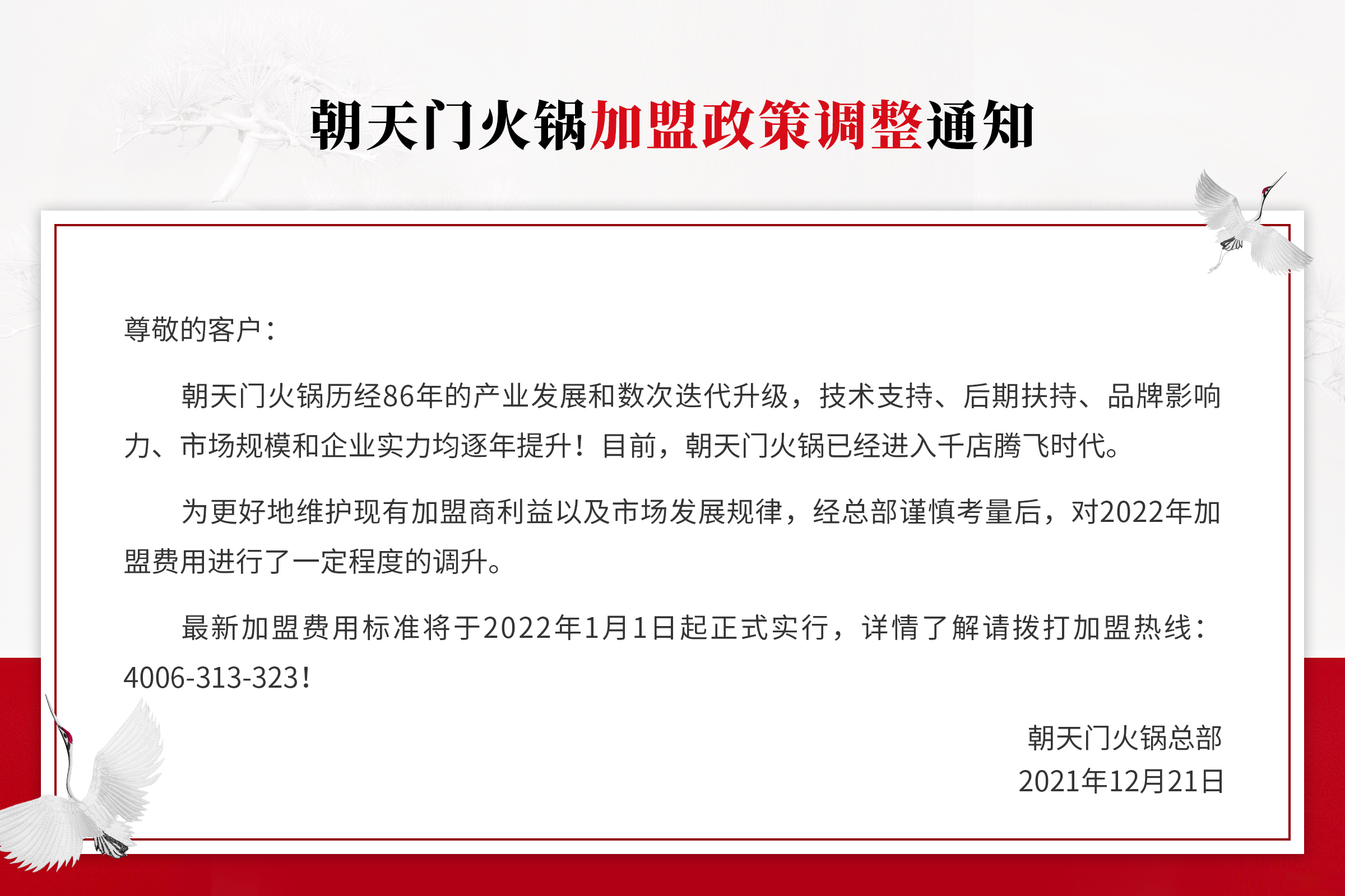 關(guān)于朝天門(mén)火鍋2022年加盟政策調(diào)整通知